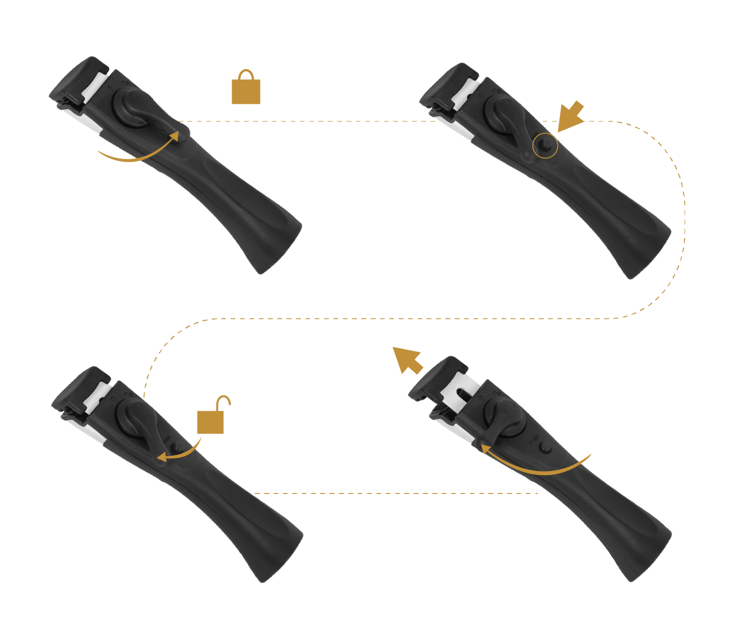 1. Duw de hendel naar links om de ontgrendel knop zichtbaar te maken.