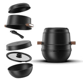 Ondersteund tot 10 kg draagkracht. Hij maakt elke pan in onze set veelzijdig - van kookplaat tot oven, koelkast tot eettafel.