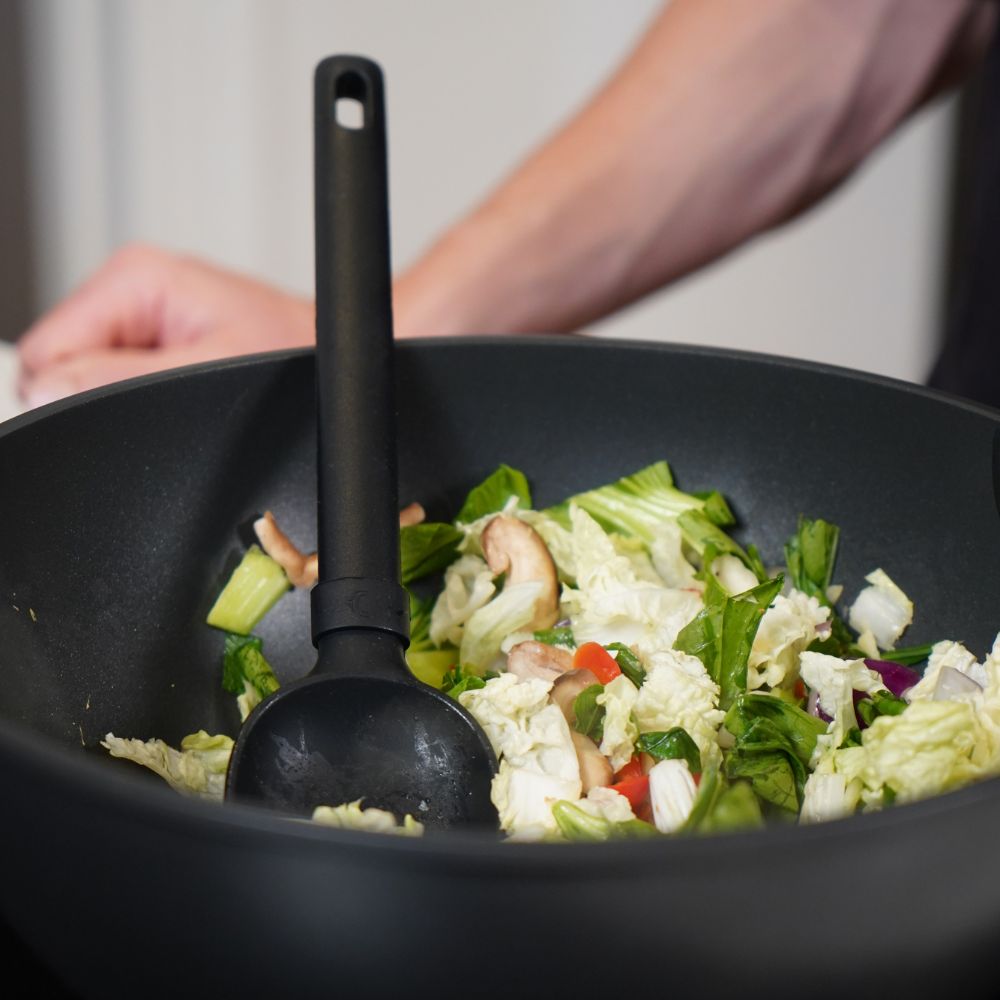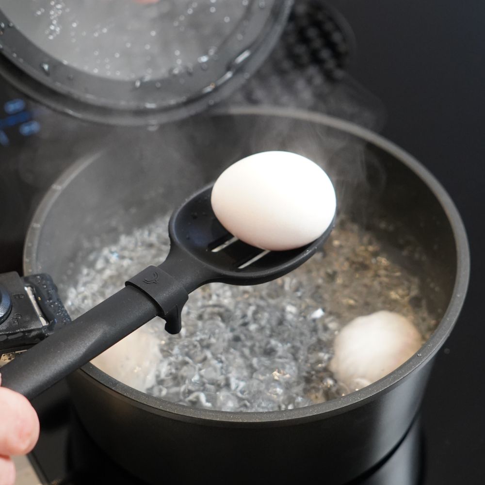 Ons keukengerei is verzwaard en heeft een ingebouwde steun, zodat de uiteinden nooit je aanrecht raken. Dit zorgt voor een schonere, hygiënische keuken.
